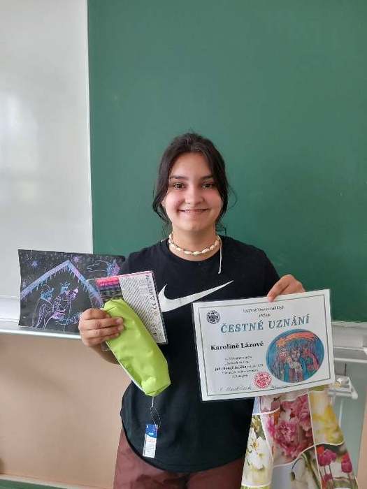 Namaluj svého anděla je název výtvarné soutěže, které se každoročně účastní také žáci naší školy. Velký úspěch měl obrázek Karolíny Lázové ze 6.B, která za něj získala čestné ocenění a také drobné dárečky, které jí do školy přijela předat členka Římskokatolické farnosti Jeníkov.