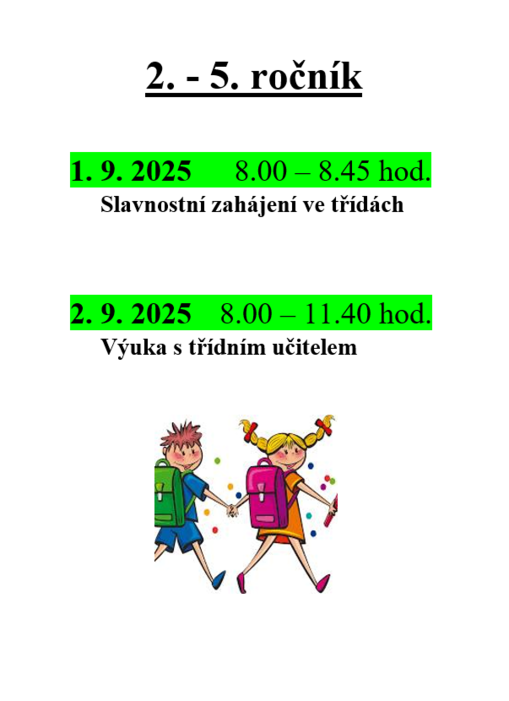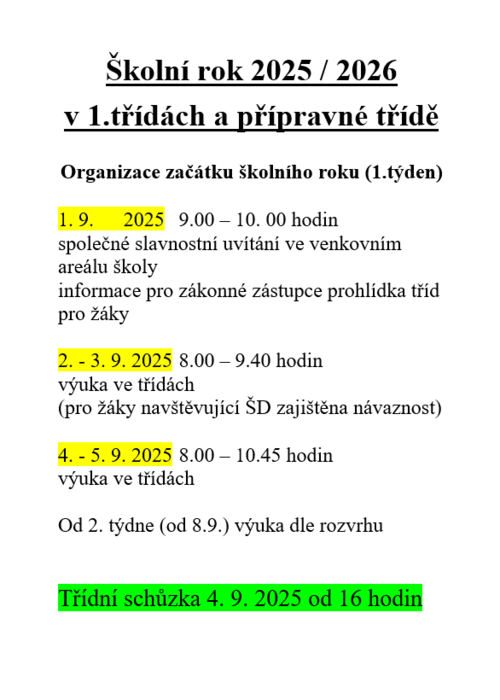 Přinášíme přehled organizace prvních dnů výuky, najdete ho v přiložených obrázcích podle ročníků.