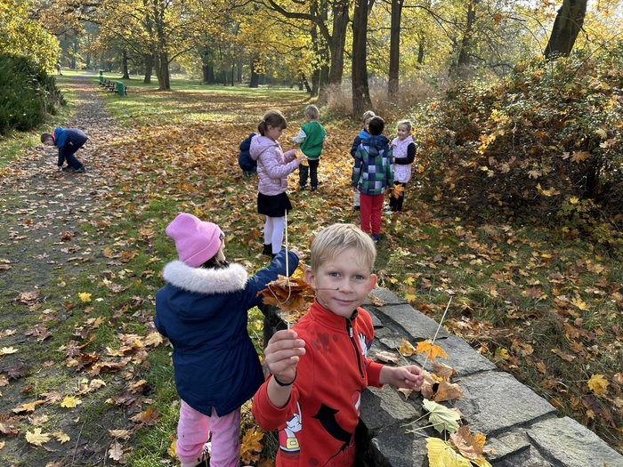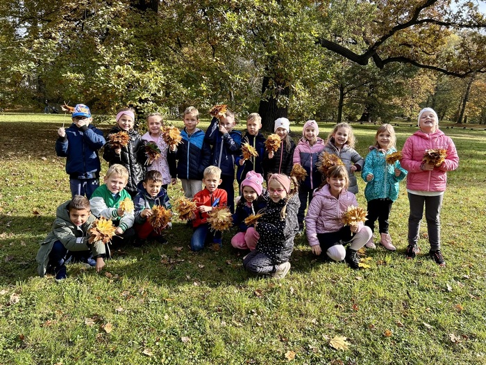 Krásné podzimní dny vylákaly na venkovní výuku také třídu 1.A. V rámci hodin prvouky a pracovních činností jsme vyrazili do Zámecké zahrady. Cílem bylo poznávání listnatých i jehličnatých stromů. Snad už všichni poznáme smrk, borovici, dub, břízu a javor. Z javorových listů jsme si vyrobili housenky, které nás budou ve třídě sledovat při učení.