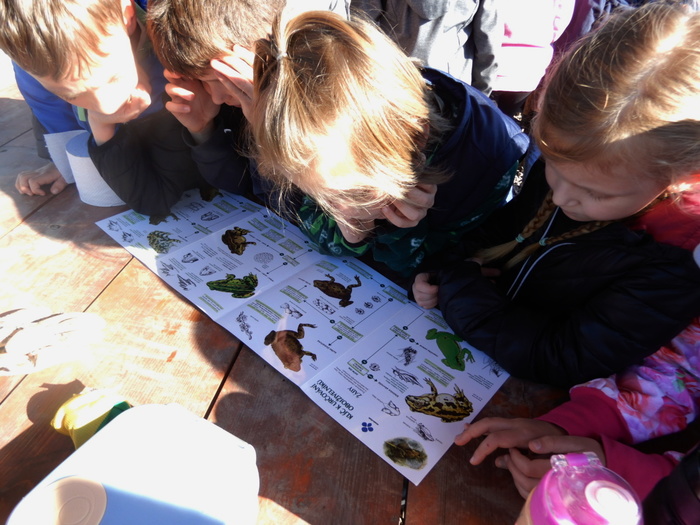 Děti z 1.C se zapojily do celostátní akce ČSOP nazvané 3 x 30 dnů pro mokřady. Vypravily se na výsypku Pokrok k venkovní učebně, která byla postavena poblíž dvou tůní pro obojživelníky. Prvňáčci se nejprve seznámili s druhy obojživelníků, pak obešli tůně a počítali odskoky žab do vody. Žabí snůšky sice ještě žádné nenašli, ale zato napočítali minimálně 20 žabek. Poslouchali žabí skřehotání a dozvěděli se, že takto se ozývají skokani skřehotaví.