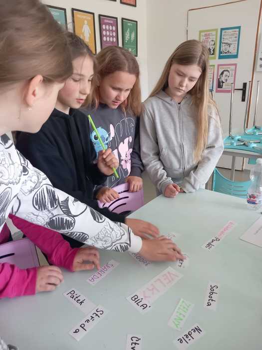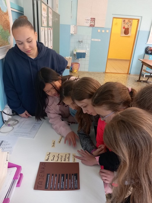 Nápad uspořádat projektový den vyšel z iniciativy členů Školního parlamentu. Žáci 8. ročníku se rozhodli připravit projektový den na téma Jaroslav Pešata, s cílem předat žákům 5. ročníku některé z informací, které sami získali v minulých hodinách. Vzhledem k obtížnosti tématu pro 5.r. přidali ještě několik aktivit z oblasti Velikonoc. A tak se řešily křížovky a kvízy, skákalo se v pytlích, přenášelo se vajíčko slalomem mezi kužely, přenášely se lentilky brčkem apod.Všechny aktivity probíhaly formou soutěží týmů, takže na konci si žáci nejen odnesli nové vědomosti o Jaroslavu Pešatovi a velikonočních zvycích, ale tři nejlepší týmy také sladkou odměnu.Starší žáci si při přípravě aktivit a jejich realizaci vyzkoušeli náročnost partnerského učení.