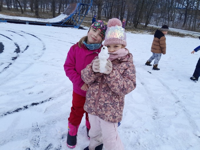 V letošním školním roce jsme zatím neměli štěstí na sněhovou nadílku. Proto děti z 1. C vyrazily na dvouhodinovou vycházku, aby si užily sněhu, než opět roztaje. Nejprve si prvňáčci naplnili skleničky na následnou badatelskou výuku. Poté se snažili trefit koulemi vybraný strom a počítali své zásahy. Následně kouzlili na kmenech v okolí sněhové úsměvy a nechybělo ani stavění sněhuláků. Děti si dopoledne užily, a pokud se ještě dočkáme sněhu, určitě zase vyrazí ven.