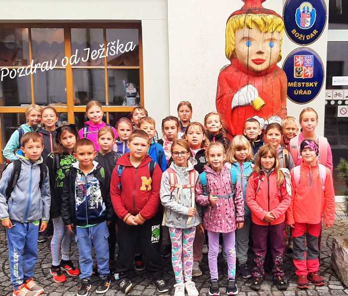 Čtvrteční ráno už nebylo tak slunečné jako včera, trošku jsme se přioblékli, ale pláštěnky nakonec nebylo už třeba. Vyrazili jsme totiž časně ráno na Boží Dar projít si Ježíškovu stezku. Děti dostaly kartičky, do kterých si po stezce zapisovaly správné odpovědi, které byly po cestě připraveny. Krásná procházka lesem doplněna dřevěnými sochami a různými prvky pro děti. Svítilo nám i sluníčko a bylo opravdu teploučko. Po splnění úkolů získaly děti od Ježíška odměnu a mohli jsme vyrazit na krásné přírodní hřiště Novako. Největší zábava byla samozřejmě s vodou a také šlapací kolotoč, který by si děti moc přály do družiny ????. Cesta zpátky na hotel utekla velmi rychle kde na nás už čekala večeře a po ní malý zábavný kvíz. Když se trošku setmělo vyrazili jsme ven na stezku odvahy. Všichni byli moc stateční a ze stezky si opět odnesli nějaké dukátky do své sbírky. Den byl trošku náročnější a tak už všichni pěkně chrní v pelíšku. Tak zase zítra ahooj.