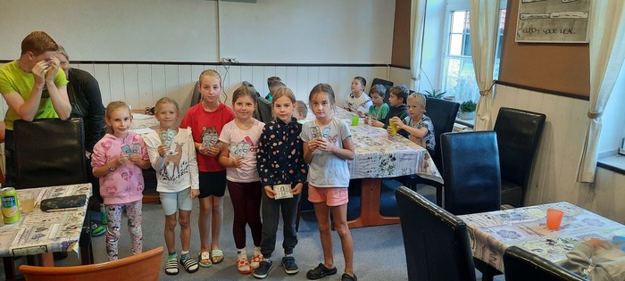 Dnešní úterní ráno nás probudilo opět sluníčko a pohodová nálada. Po výborné snídani jsme předvedli své talentové vlohy. Někdo zpíval, někdo tančil, vyprávěl vtipy, hrál pohádku…. hádali jsme i rébusy za dukátky do měšce. Poté jsme se rozdělili do týmů a hráli hru ,,Navigátor“ u které jsme se opravdu nasmáli. Po obídku přijel opět pošťák, který měl spoustu krásných pohledů i dopisů. Po poledním klidu jsme si mohli v místím baru zakoupit malé drobnosti na zub a pak už hurá zase ven na další hry a soutěže. Nejvíce nás bavilo v lese, kde jsme si stavěli oblíbené domečky pro skřítky. Příroda je zde opravdu krásná a nabízí spousty přírodnin, které děti uměly opravdu šikovně využít. Po večeři nás čekalo promítání velice populární pohádky, která opravdu pohltila všechny diváky i divačky. Zítra nás čeká dlouhý výlet, tak už odpočíváme ve svých postýlkách a posíláme všem dobrou noc.