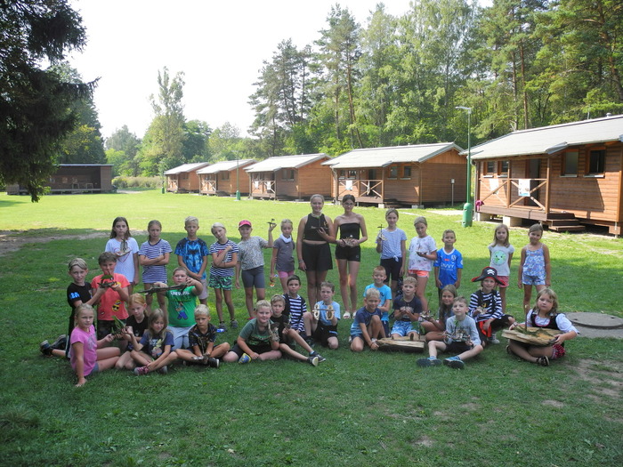 Středeční den jsme si jak jinak než opět báječně užili. Po snídani se děti svezly na lodičkách a plnily úkoly skryté v láhvích. Další hra, která děti velice pobavila byla bitva pirátů a námořníků. Po obědě přijel tradičně pan pošťák, aby jsme si mohli o poledním klidu číst vzkazy od rodičů. Po krátkém odpočinku jsme vyrazili do lesa na procházku, pozorovali přírodu a nasbírali dřevo na večerní táborák. Nezapomněli jsme samozřejmě zkontrolovat naše domečky pro lesní skřítky, které jsme předchozí den stavěli. Jelikož bylo teplo, zalezli jsme si do stínu k rybníčku a pouštěli si naše vlastnoručně , vyrobené lodičky z přírodních materiálů. Pčed večeří nás čekala ještě pirátská stezka s úkoly na konci s překvapením. Skládali jsme hlavolamy a hráli hru ,,kostky”. Náš příiemně strávený den jsme zakončili táborákem u kterého nesměla chybět hudba, tanec a dětmi oblíbené karaoke. Opět příjemně unaveni už odplouváme do svých postýlek. A zítra hurá opět nás čeká….. a to se dozvíte až zítra….pa