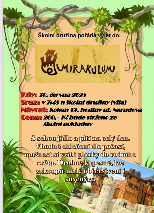 V Mirakulum už jsme sice párkrát byli, ale je to výlet zajímavý a čekají tam na nás i nějaké novinky. Budeme pryč celý dlouhý den, ale alespoň si od nás rodiče odpočinou.